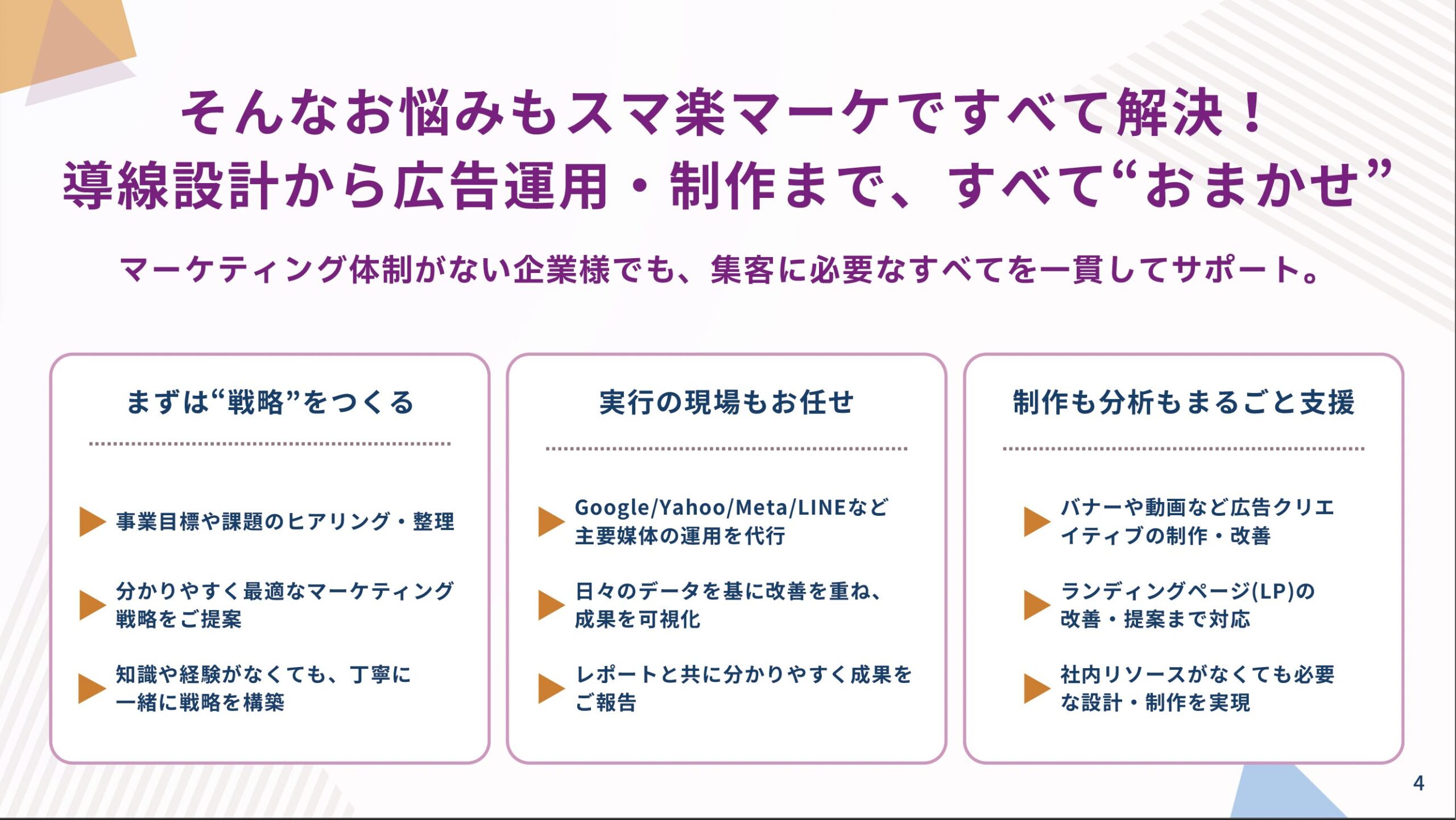 広告出稿だけでなく、戦略設計や導線設計も一貫対応!
